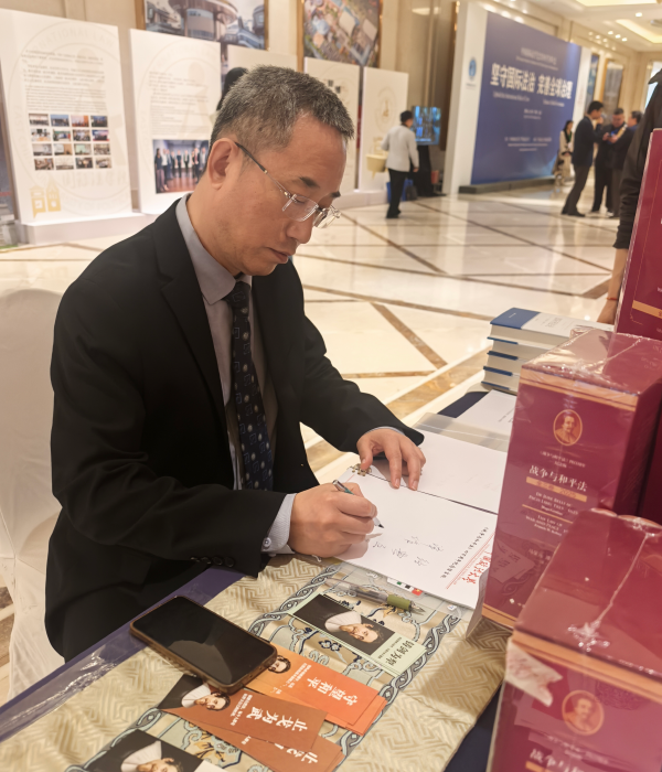 活动现场,中国政法大学国际法学院/涉外法治学院院长李居迁莅临我社展台参观指导。李居迁院长在《战争与和平法》主题纪念留言板上亲笔题词,寄语“经典巨著,精良译作,传世精品,必将广益学人,推动国际法研究发展!”笔墨寄意经典,言辞聚力学科,为国际法经典研究与学术传播工作赋能领航,也为现场学界同仁共研经典、深化交流营造了浓厚氛围。