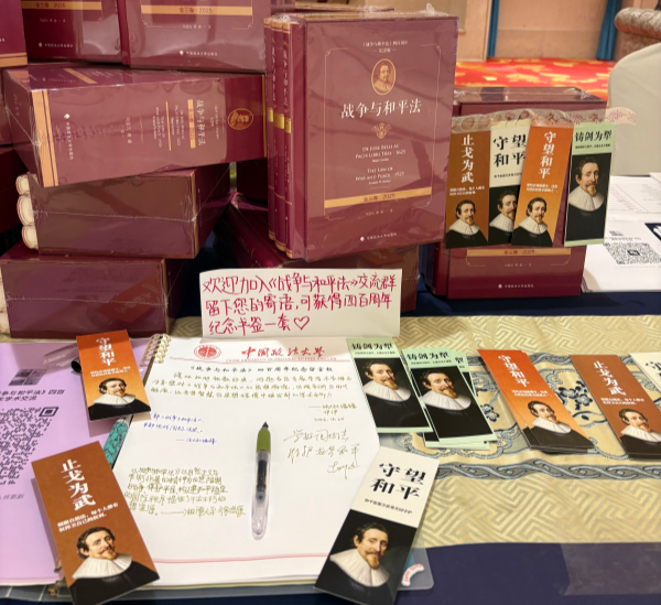为纪念格劳秀斯经典著作《战争与和平法》问世四百周年,我社第三编辑部匠心打造主题书签、定制纪念袋两款文创周边,兼具典雅质感与学术内涵,亮相即广受学界好评。现场交流中,编辑结合和平鸽设计,阐释《战争与和平法》倡导和平秩序、规制战争行为的核心法理主旨。精致的典籍主题书签深受青年学子喜爱,助力传承经典法治思想与和平理念。与会同仁围绕这部国际法奠基之作的经典译介、前沿学术研究,以及我社国际法精品出版成果展开深入交流,进一步推动经典著作传播,深化法学领域学术联动与交流合作。